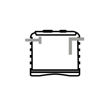 Η δεξαμενή διαθέτει ενσωματωμένο καπάκι, επισκοπικούς πώρους, εξαερισμό και σωληνώσεις εισόδου-εξόδου από PVC, επιτρέποντας την ασφαλή απομάκρυνση στερεών υλών και την προώθηση καθαρισμένων υδάτων σε δημόσιο δίκτυο ή σε επεξεργασία επόμενων σταδίων.