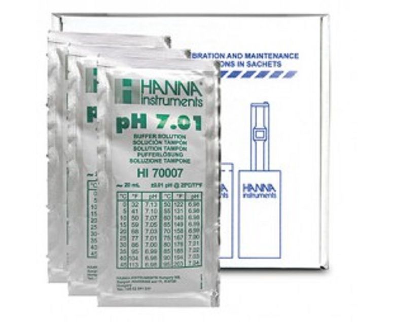 Το HI70007P είναι ένα υψηλής ποιότητας ρυθμιστικό διάλυμα βαθμονόμησης pH 7,01, ιδανικό για ηλεκτρόδια pH, εργαστηριακή χρήση. Η συσκευασία περιλαμβάνει 25 φακελάκια των 20 mL, κάθε ένα με αριθμό παρτίδας και ημερομηνία λήξης, κατασκευασμένο από αλουμινόχαρτο που διατηρεί τη φρεσκάδα και την ακρίβεια του διαλύματος.