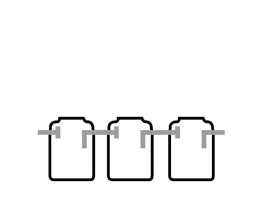 Η δεξαμενή λυμάτων με τρεις χώρους κατασκευάζεται από τρία μονολιθικά τμήματα πολυαιθυλενίου, με λείο σχέδιο και σταθερό πάχος τοιχωμάτων, ενισχυμένη με οριζόντιες νευρώσεις. Στο πάνω μέρος των δεξαμενών υπάρχει τάπα με κλείσιμο τύπου μπαγιόν Ø 400 για εύκολη καθαριότητα και επιθεώρηση.